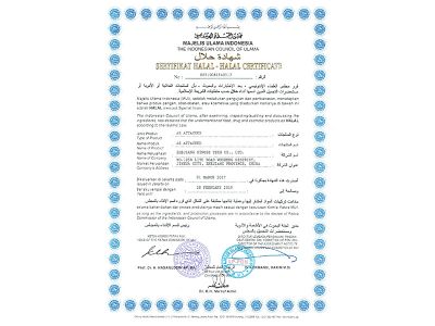 公司被評為“國家高新技術企業”,并有多個產品獲得“國內發明專利”,通過了FSSC22000食品安全體系認證,ISO14001環境管理體系,MUI HALAL認證,SKS KOSHER認證,ISO9001質量管理體系和ISO22000食品安全管理體系認證,并有多個產品通過了“歐洲REACH法規”注冊和“韓國REACH法規” 預注冊。